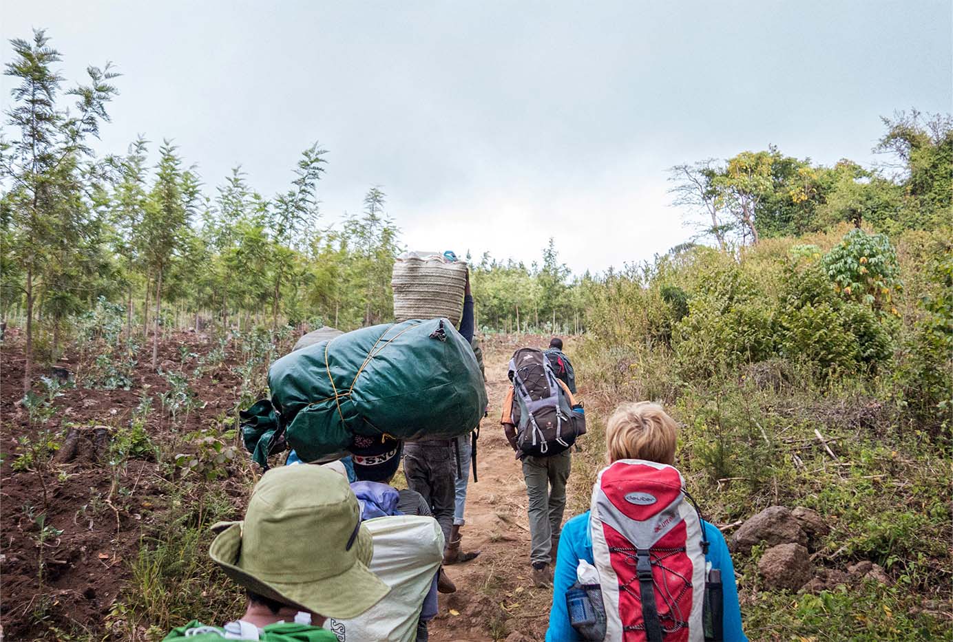 After breakfast, we drive to the remote Rongai Gate at Nale Moru on the north side. The initial trail cuts through a lighter, drier rainforest before opening into the heath zone. We climb steadily, enjoying the solitude of the northern approach, and set up camp at Simba Camp (9,300 ft) near First Cave, with magnificent views out over the plains of Kenya.